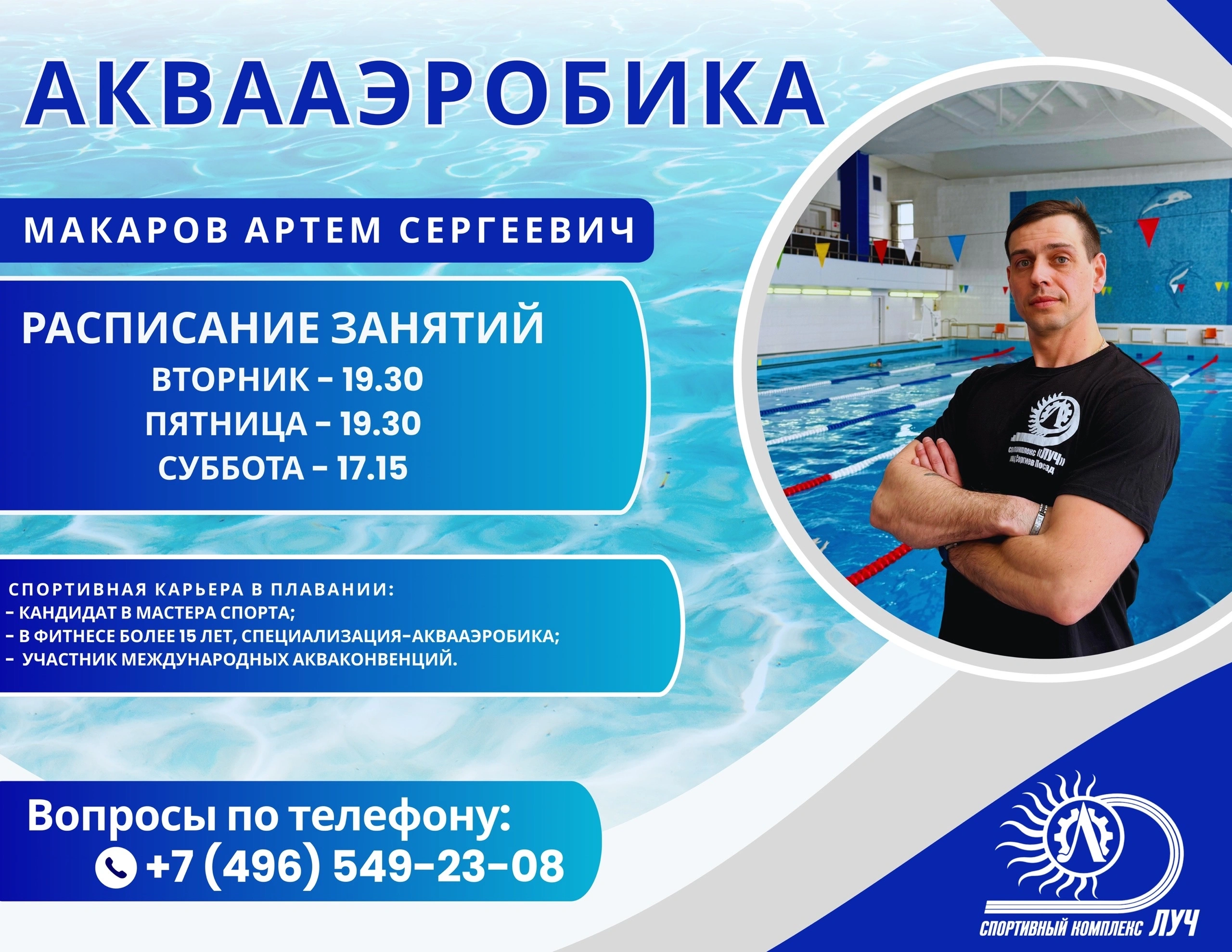 Более 15 лет в фитнесе, специализация – аквааэробика.