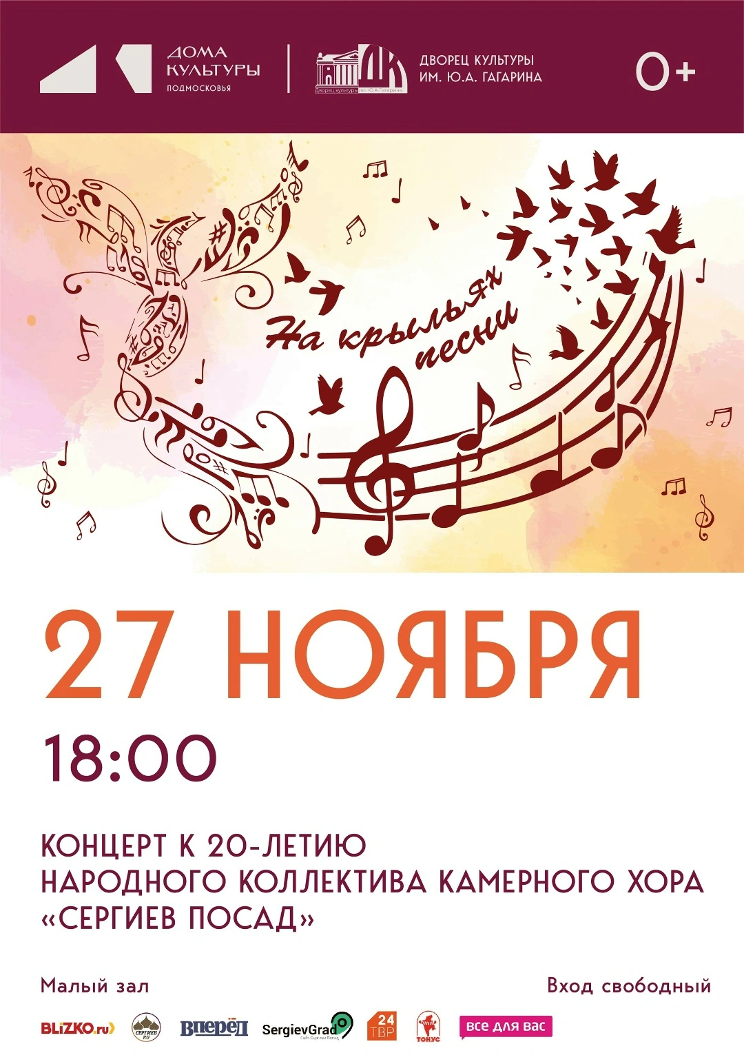 27 ноября, во Дворце культуры им. Ю. А. Гагарина состоится концерт Народного коллектива камерного хора «Сергиев Посад».
