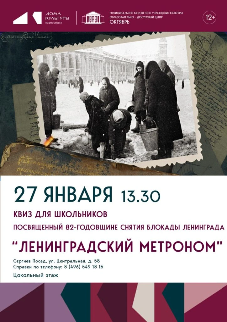 27 января 2026 года в 13:30 состоится квиз-игра для школьников, посвященная 80-летию снятия блокады Ленинграда «Ленинградский метроном».