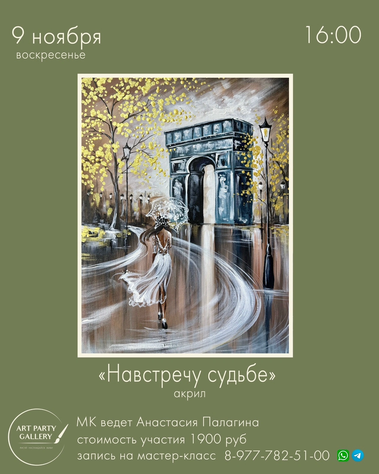 «Навстречу судьбе» — это вдохновляющий художественный проект, в центре которого — тема поиска собственного пути, внутренней силы и непрерывного движения вперёд. Проект исследует образ судьбы как неиссякаемого потока возможностей и испытаний, с которыми человек сталкивается на своем жизненном пути. В рамках этого произведения используются яркие метафорические образы: дорога, ведущая к горизонту, пересекающиеся пути, свет в конце тоннеля, символы перемен и надежды. Художественные работы балансируют между абстракцией и реализмом, передавая и внутренние переживания, и внешний поиск смысла.