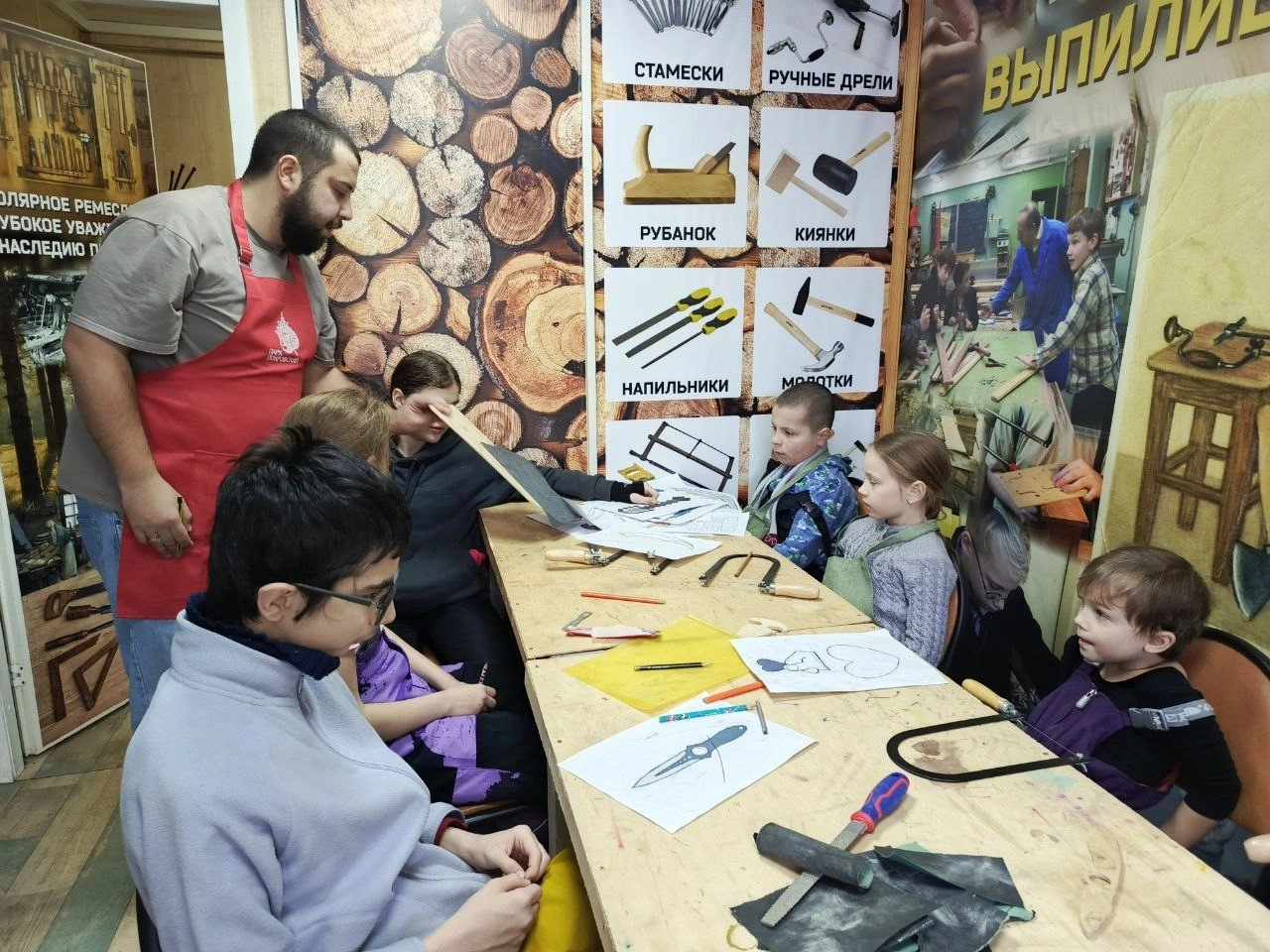 В столярной мастерской «Покровская столярка» в парке «Покровский» ребята могут реализовать свои творческие замыслы, используя лобзик для создания различных изделий из дерева.