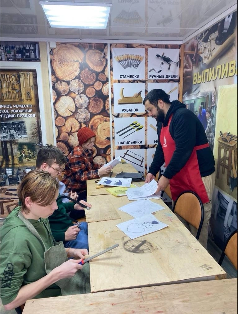 В столярной мастерской «Покровская столярка» в парке «Покровский» ребята могут реализовать свои творческие замыслы, используя лобзик для создания различных изделий из дерева.