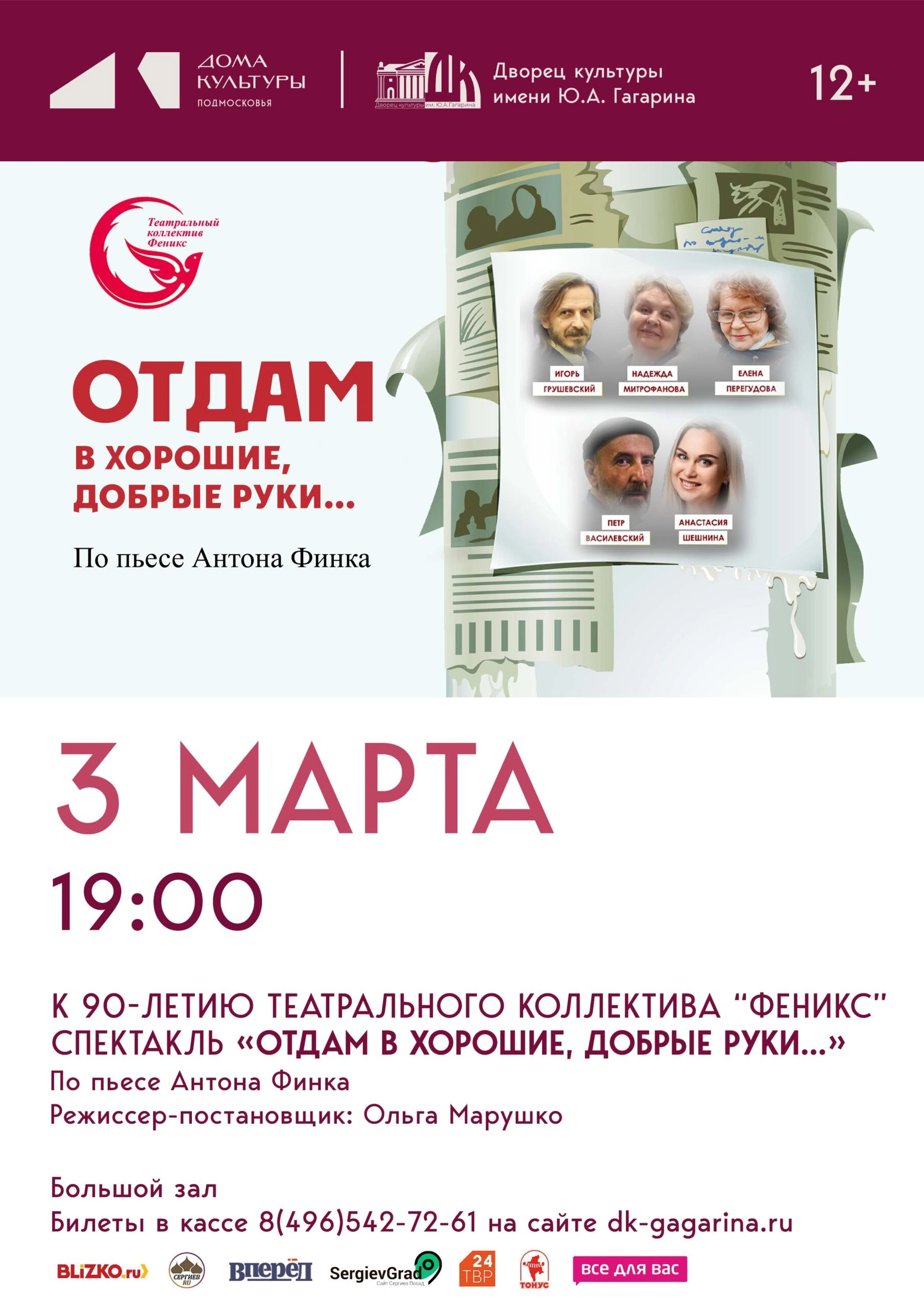 3 марта 20264 года в 19:00 состоится спектакль «Отдам в хорошие добрые руки...»