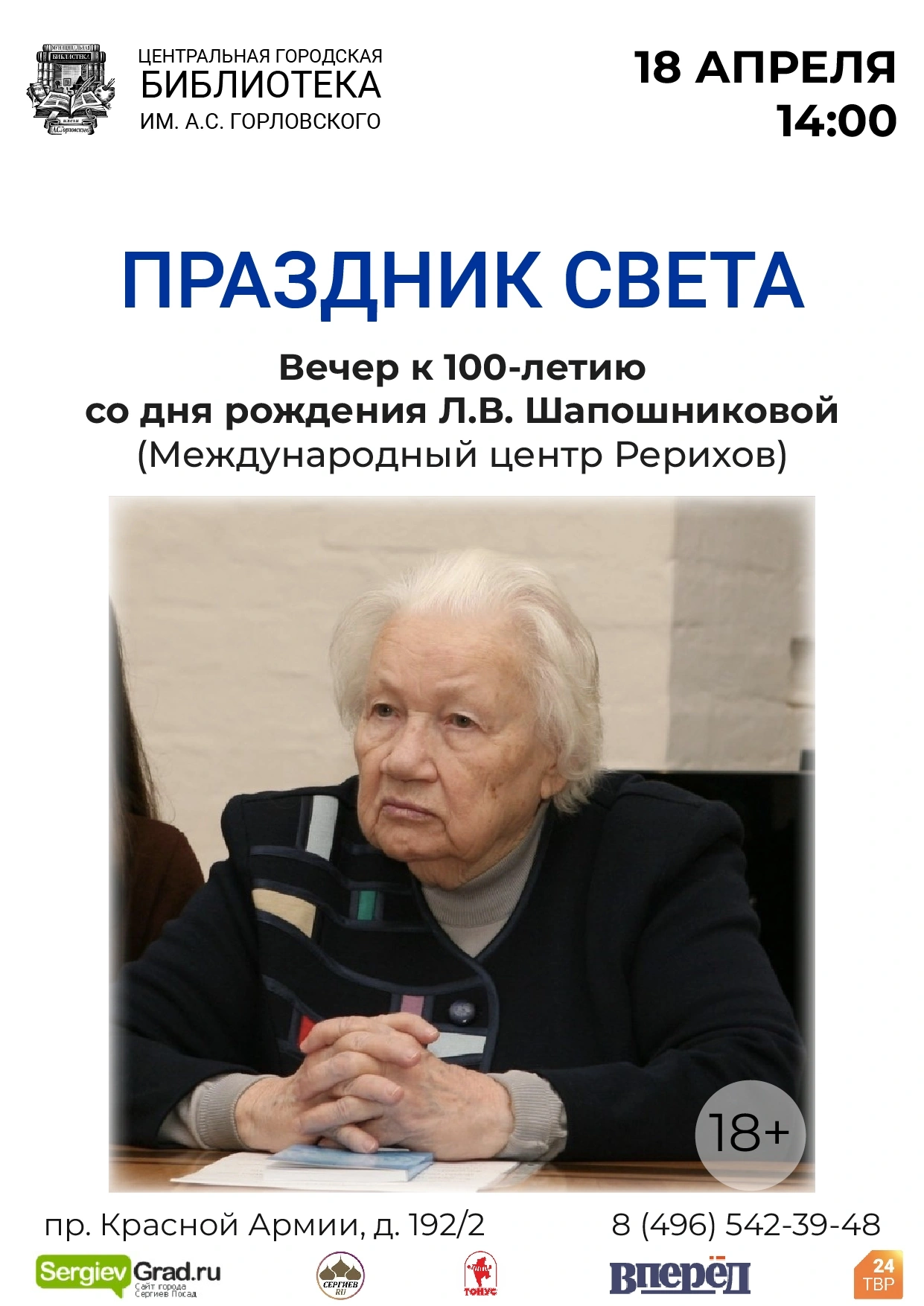Приглашаем на «Праздник Света» — вечер к 100-летию со дня рождения Л. В. Шапошниковой.