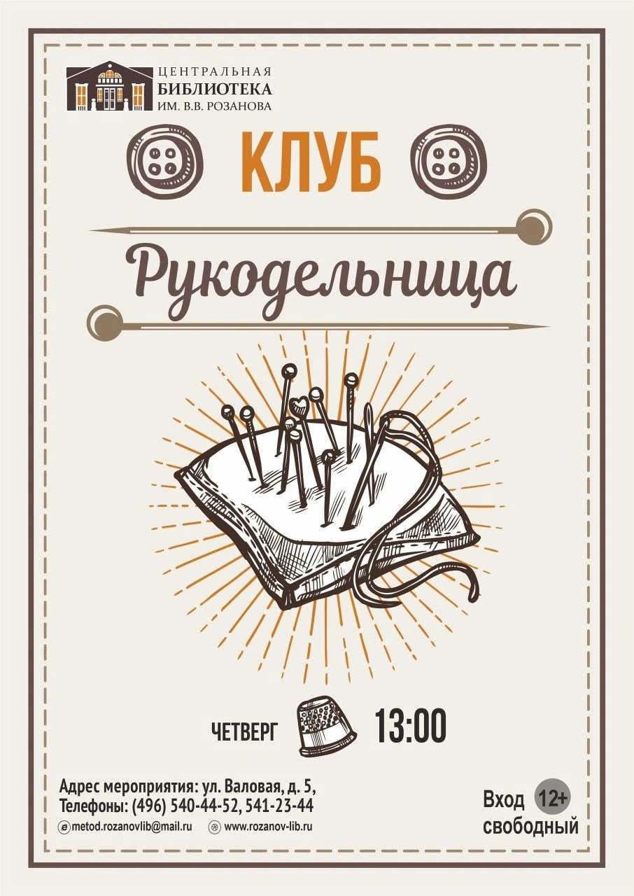 Каждый четверг в 13:00 приглашаем в клуб «Рукодельница»